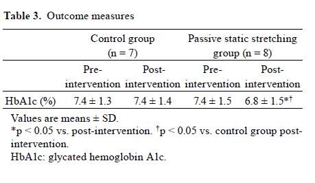 2型糖尿病患者の血糖値に対する他動静的ストレッチングの効果