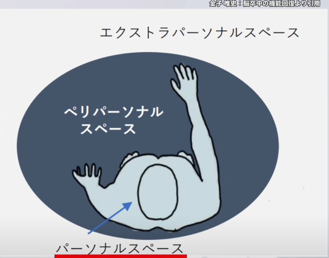 定義:身体に最も近い、個人的・感覚的な境界の空間です。プライバシーや身体所有感と密接に関わっています。